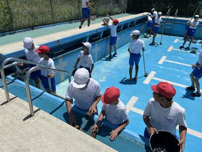 6月5日(水)にプール清掃を行いました。自分たちや下級生のために一生懸命に掃除することができました。