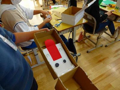 おとなりの学級では、紙コップと紙皿を使って、転がるおもちゃを作っていました。