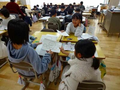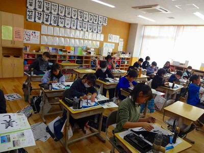 教室では、図工の作品を仕上げたり、友だちと協力して、社会科のまとめをしたりしていました。また、書き初めの練習をしている学級もありました。みんな冬休みが待ち遠しいようです。